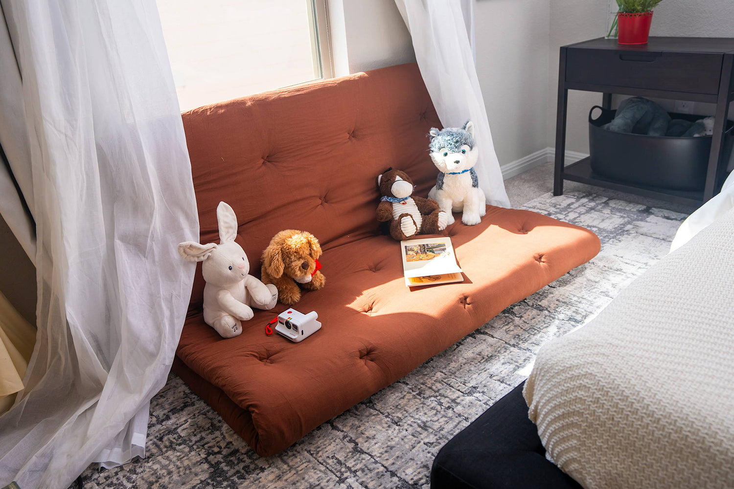 You can use this futon mattress almost anywhere! It sets up in just 2 minutes, making it perfect for the bedroom, living room for TV, apartments, small dorms in college, road trips, travel, sleeping on the floor in a toddler's room, or spending the night at someone else's house.