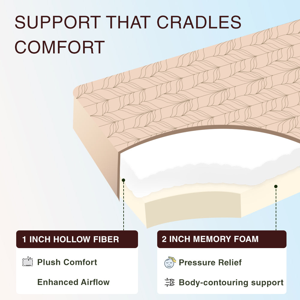Experience breathable, skin-friendly comfort with our 100% cotton cover, designed to enhance airflow and provide a gentle touch.